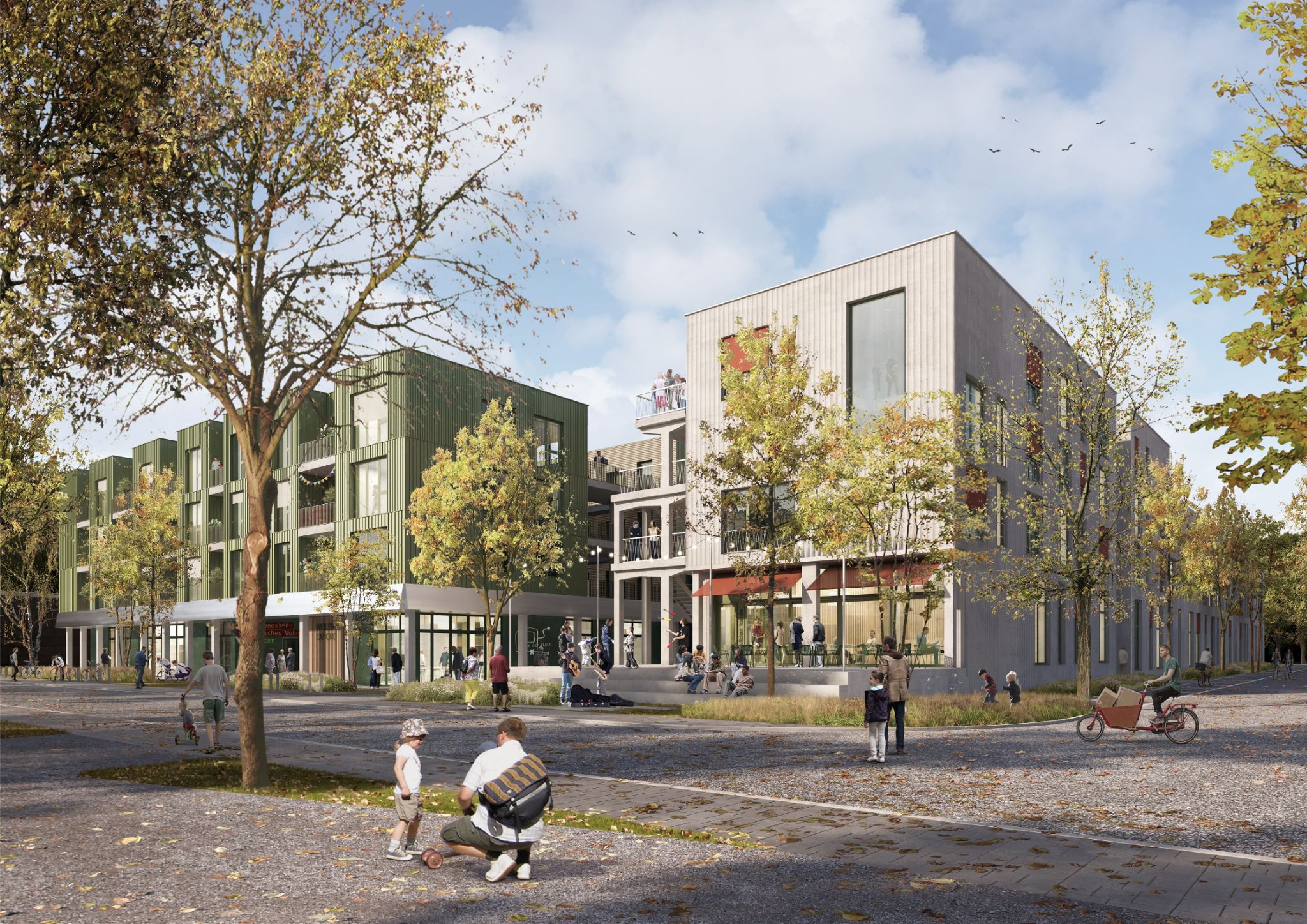 Das Wohnbauprojekt der Grüner Weiler eG wird auf der Konversionsfläche der ehemaligen Oxfordkaserne in Münster auf einem 9.000 m² großen Baufeld im Nordosten des Quartiers realisiert. Der Gebäudekomplex besteht aus drei Baukörpern: dem sogenannten „Punktbau“ am späteren Boulevard mit öffentlichen und gemeinschaftlichen Einrichtungen (u. a. einer „Velo-Halle“), dem „Riegelbau“ und dem „Winkelbau“ mit überwiegender Wohnnutzung und einem gemeinsamen Wohnhof, der mit seiner multifunktionalen Bespielung eine besondere Qualität im Wohnumfeld schafft.