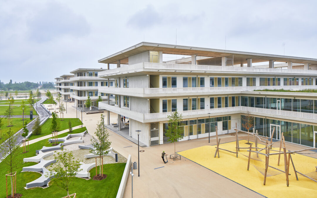 Zwischen den bereits bestehenden Gebäuden am Senftenberger Ring in Berlin-Reinickendorf hat die GESOBAU AG auf einem freien, ca. 23.600 m² großen Grundstück im Zentrum des Märkischen Viertels, sechs neue Wohngebäude mit insgesamt 388 Wohnungen und einer Kindertagesstätte realisiert.